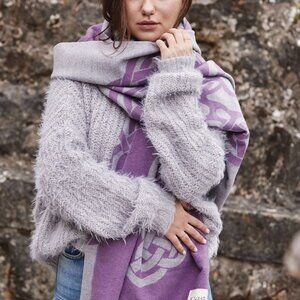 Super soft feel is warm and cozy- Generous larger size allows you to drape or wrap as your mood suits- Reversible wear reveals opposite color palette on back- Celtic tree of life motif