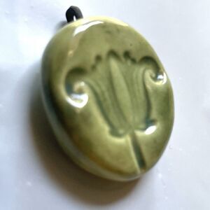 New Ceramic Bohemian Floral Pendant - Handmade one of a kind Green Fleur Flower