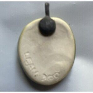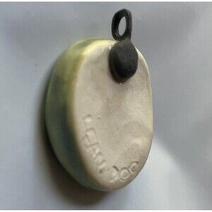 This pendant is made with ceramic, glaze and a brass component to put it in a chain or string for wearing as a necklace. Chain/string not included.