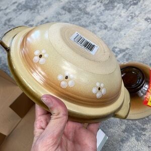New Ceramic Clay Pot Helperware Hot Pot Lidded Brown Flowers Floral Design