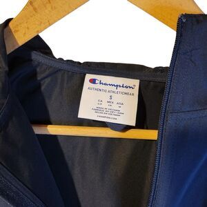 Stay stylish and comfortable during your athletic activities with this new Champion Stadium Navy Packable Lightweight Jacket. New with tags, size Small.