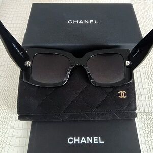 Brand New Chanel 5435 C.501/6G, Black/Gold, Grey Gradient Lens RECTANGLE SUNGLASSES..