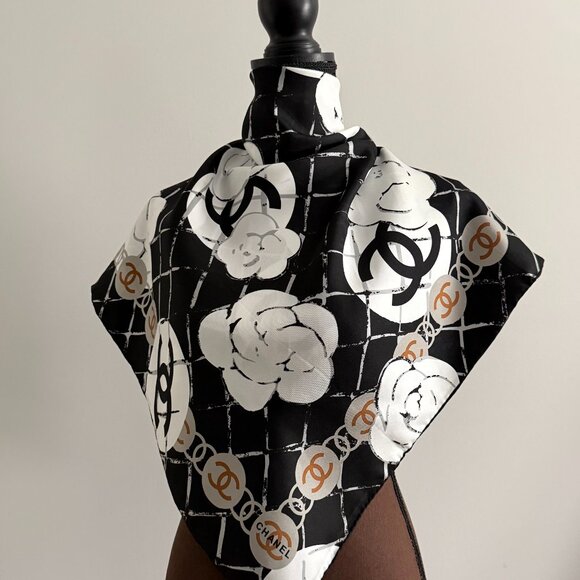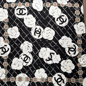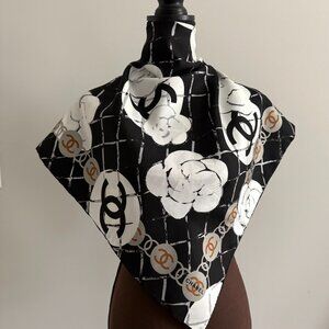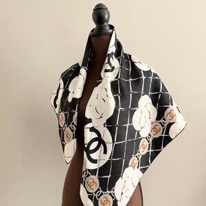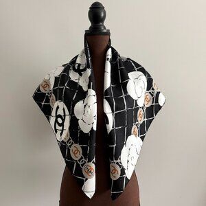 Authentic Chanel Iconic Camellia Flower Silk Scarf