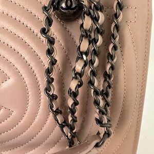 Beautiful Chanel small shopping tote made in rich calfskin leather, gunmetal hardware, front CC and stitching detail. Practical and elegant with plenty of interior space.