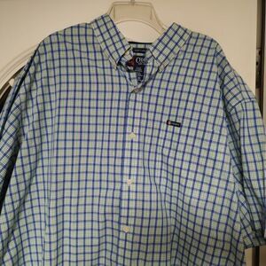 New with tag chaps short sleeve button down shirt size men's 3XB. It is blue green 30 inches across and 34 inches long.