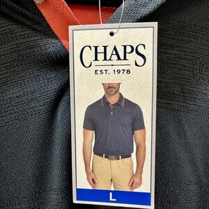 New Chaps Golf Polo Shirt Men's Size L Black with Orange Slim Fit Short Sleeve
