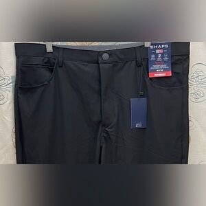 NWT mens Chaps solid black dress business pants, perfect for the office, managers, Wall Street, coaches and more. Zipper close back pocket to protect you valuables. 38/32.