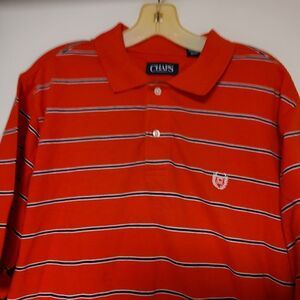 New Chaps Orange Blue Striped Polo Size Men's L Tall