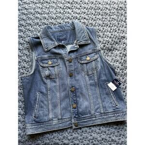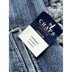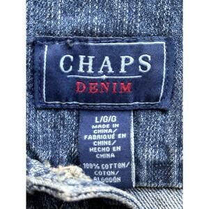 CHAPS, by Ralph Lauren denim full button vest in size large. Made of cotton denim blue, this casual vest features a collared neckline, full zip closure, and pockets. Easy to care for with machine washable fabric, this vest is perfect for adding a touch of sophistication to any outfit. Would look amazing over a white tee or button up.