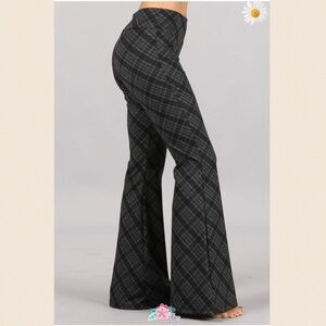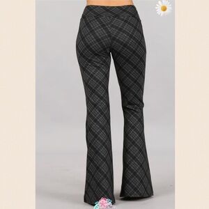 New! Charcoal Grey Plaid Print Bell Bottom Pants