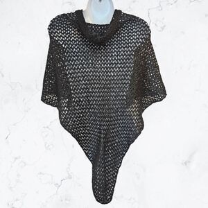New Charlie Paige Black Knitted Sequin Hooded Poncho