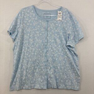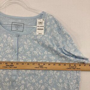 New Charter Club Intimates sz XXL Light Blue Ditsy Floral Short Sleeve Button Up