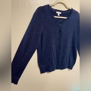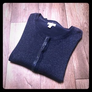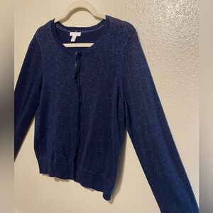 Button front sequined navy blue knit top shirt . Cotton / poly blend. Size L by Charter Club. NWT. Pit to pit is 21”. Pit to hem is 15”. Shoulder to hem is 25”. Cotton | Poly | Metallic