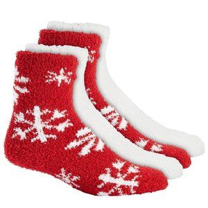 "You get twice the comfy coziness in this 2-pack of cute and fuzzy snowflake and solid socks from Charter Club.