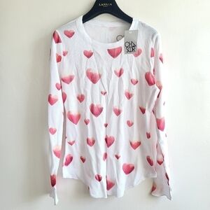 New With Tag Chaser Hearts Thermal Waffle Knit Ribbed Long Sleeve Pullover Shirt