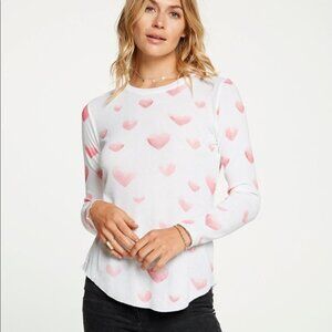 New Chaser Hearts Thermal Waffle Knit Ribbed Long Sleeve Pullover Shirt NWT