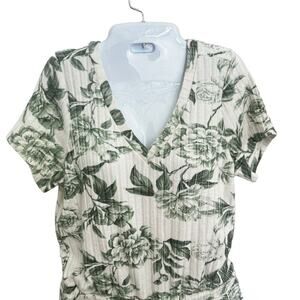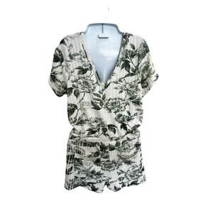 Brand New with tags, Chaser Poor Boy Ribbed Double-V Shorts Romper Green/Ivory Topical Print, Soft and Comfy MSRP: $88