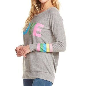 New Chaser Rainbow Stripe Love Knit Pullover Sweatshirt