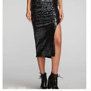 New Chaser sequin skirt midi stretch black side slit ruched Swiftie party goth