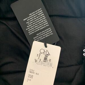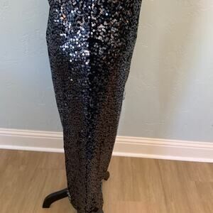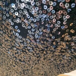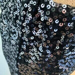 New with tags, but is missing a few sequins. Not very noticeable, given fabric and sequins are both black. See last 3 photos for details of this flaw.