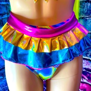 This adorable Micro mini skirt is made to be layered with a bottom. One size.