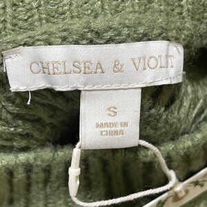 Stay cozy and stylish with the Chelsea & Violet Green Pom Sweater. This mock neck sweater in size S is perfect for cool weather and adds a pop of color to any outfit.