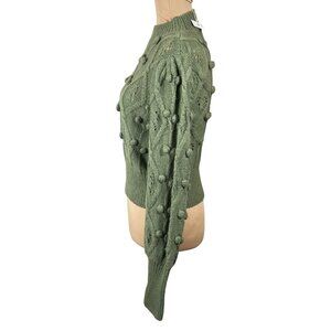 New Chelsea & Violet Green Pom Sweater Size S Small Mock Neck