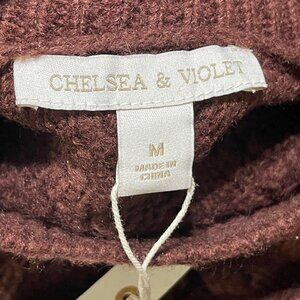 Cozy and stylish, this Chelsea & Violet sweater in brick red features a mock neck design, perfect for cooler weather. Crafted in a flattering medium size, it offers both warmth and fashion for any casual outing.