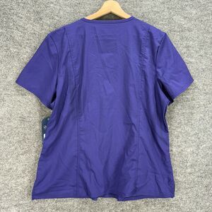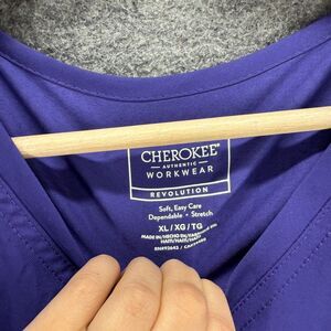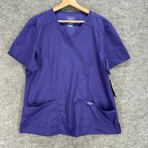 New Cherokee Scrub Top Women XL Blue V-Neck Short Sleeve Pockets Stretch Work