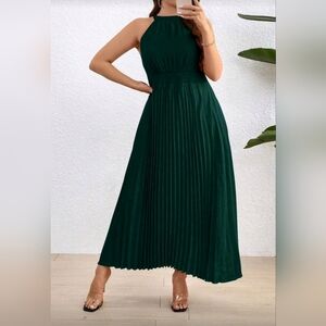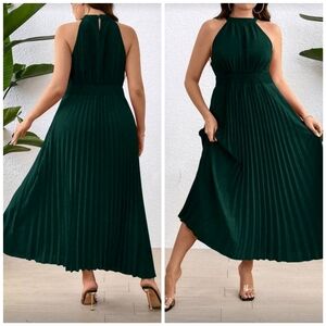 New Chic Halter Pleated Dress PLUS Sleeveless Green