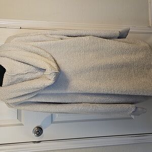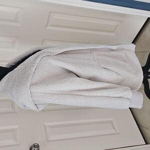 Stay warm with this cozy cream/Oatmeal hooded fleece jacket. Features two front pockets for convenience.