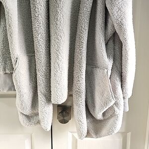 New Chicgal Fuzzy Hooded Open Front Sherpa Jacket Coat W Pockets 2XL Oatmeal