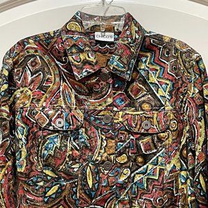 New Chico's 0 Small Fall Colors Artsy Button Jacket Top Unique Never Worn!