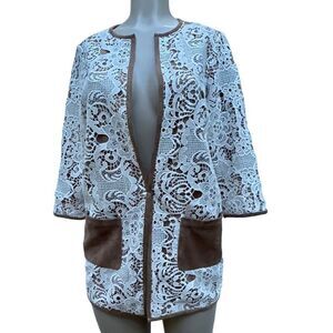 New Chico's Blazer Women's Size 0 (S) Brown & Cream Lace Open Front Suit Jacket