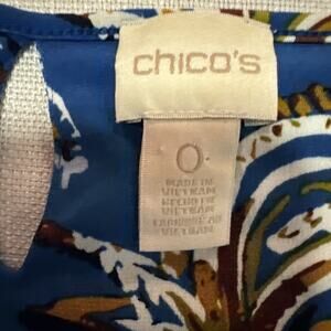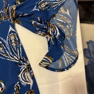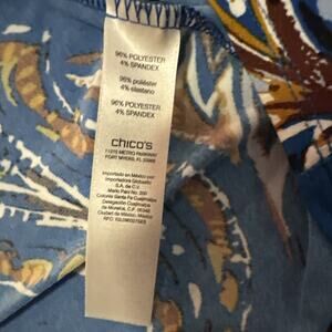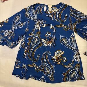 New Chico's Blue Paisley Flare Sleeve Round Neck Stretch Top XL