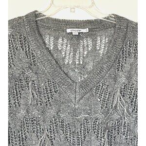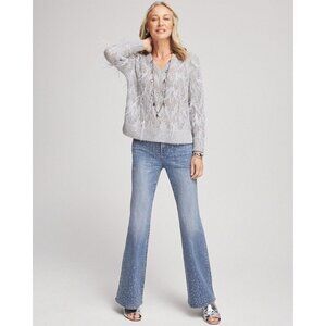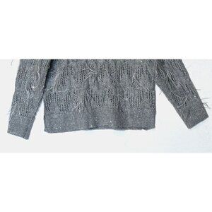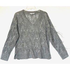 New Chico's Gray Wool blend Sequins Feather Pullover Sweater Top
