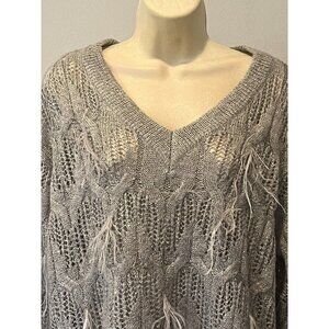 New Chico's Gray Sequins Feather Knit Pullover Sweater Top - Soo Beautiful, Soft and Warm!