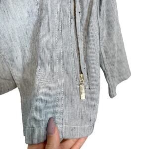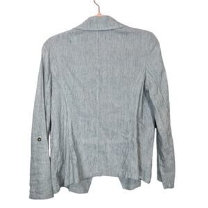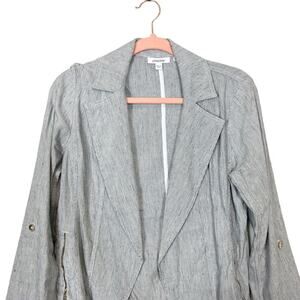 New Chico’s Linen Blend Striped Open Front Blazer
