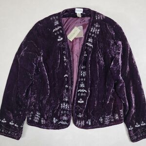 New Chicos Lula Jacket Purple Crushed Velvet Embroidered Beaded Blazer Size 2