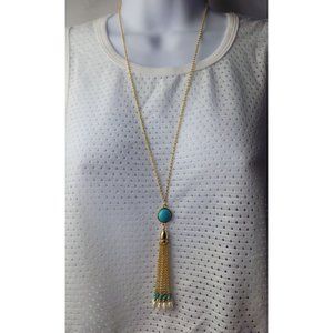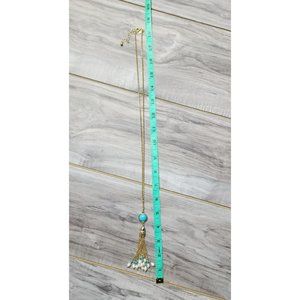 New Chico's Moon stone turquoise tassel white pearl necklace