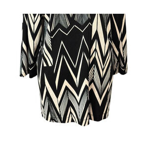 New Chico's Travelers Tunic Size XL Black Geometric Zig Zag V Neck Artsy