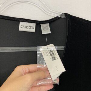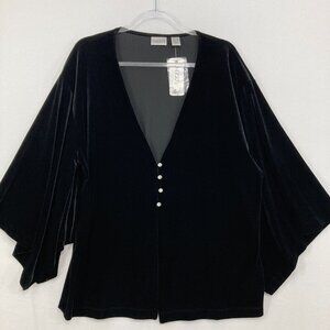 New Chico's size Large/2 Black Velvet Flare Sleeve V Neck Top Dark Romantic