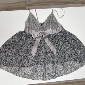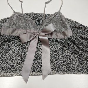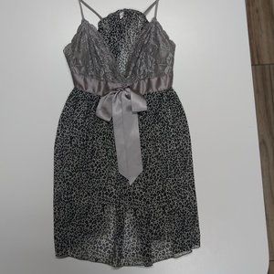 New Chiffon Leopard Print Babydoll with Lace Bodice & Satin Bow Empire Waist