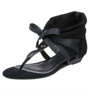 New Chinese Laundry Black Twill Sudoku Sandal Open Toe strap semi-wedge NIB 6.5
