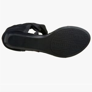 New Chinese Laundry Black Twill Sudoku Sandal Open Toe strap semi-wedge NIB 7