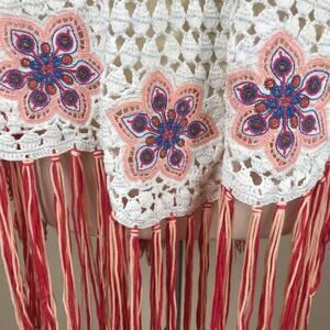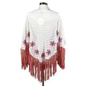 New Chloe Embroidered Crochet Poncho Swingy Fringe $1795 Size M