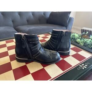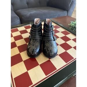 New Chloe Iconic Susanna Leather Studded Boot, Black/Silver Studs, Child US 10