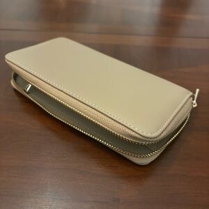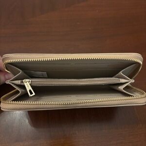 Beautiful, zippered cream wallet—never been used. Faux leather exterior.