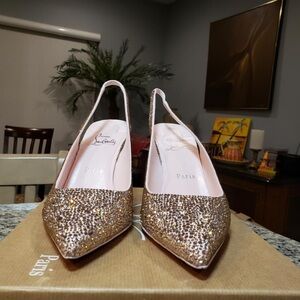 New Christian Louboutin Kate Strass Pointed Toe Sling Pump Size 38.5