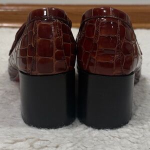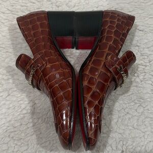 New Christian Louboutin Mj Croc Embossed Loafer 50 Block Heel Acajou Sz 38 US 8